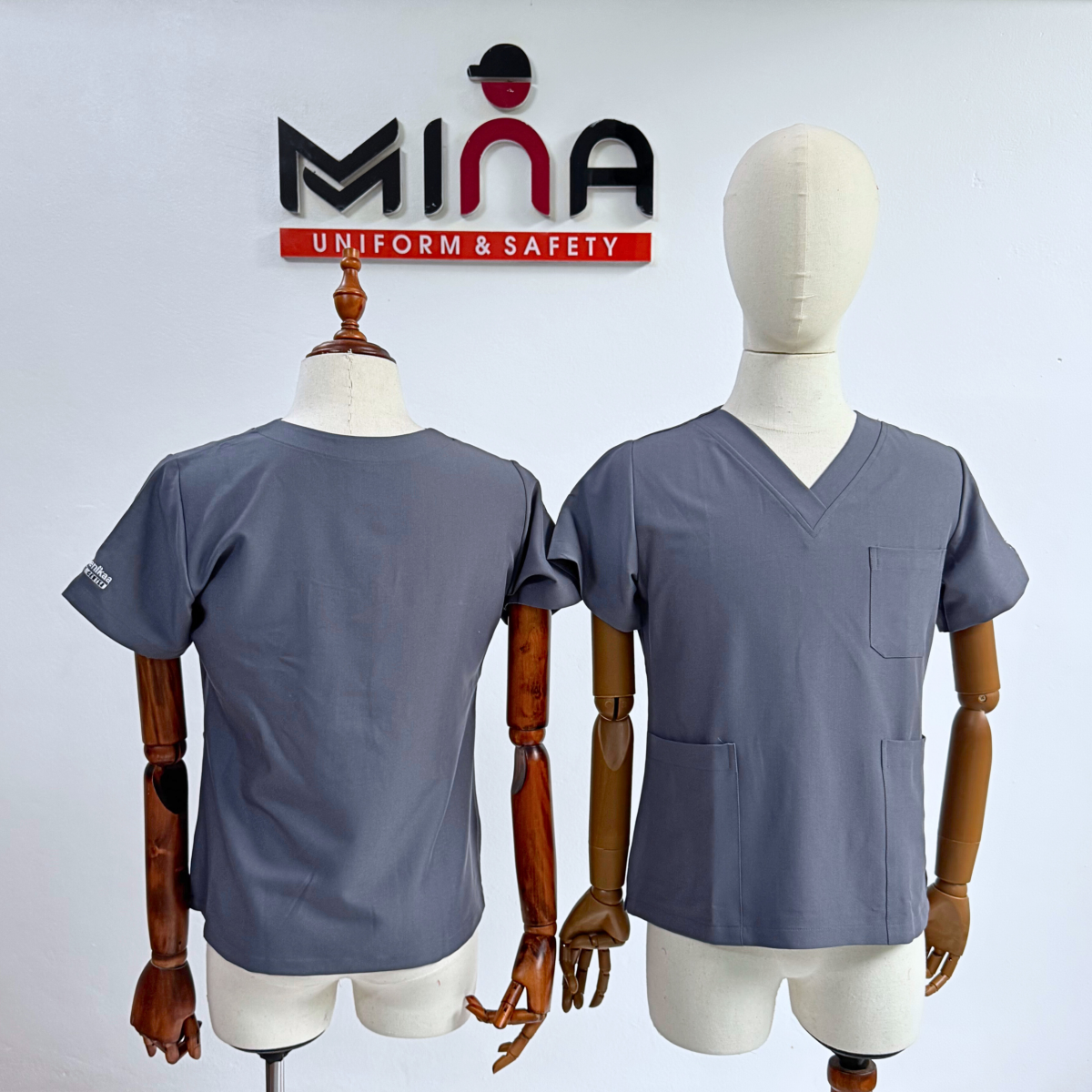 Đồng phục y tế Mina Safety màu ghi chì được may từ vải cao cấp: